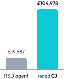 Our proven track record shows that randd can help you claim back significantly more compared to an accountant, an alternative R&D agent, or a self-submission.